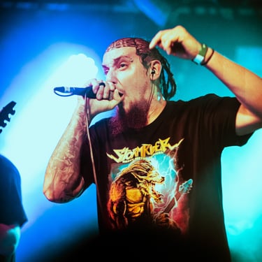"Buried Shallow had a large gathering that suddenly rose up from the grave and filled the mosh pit. There was a uniting of energy, sweat and flying hair as this deathcore five-piece unit unleashed with precision and melted the venue with the intensity of their delivery."